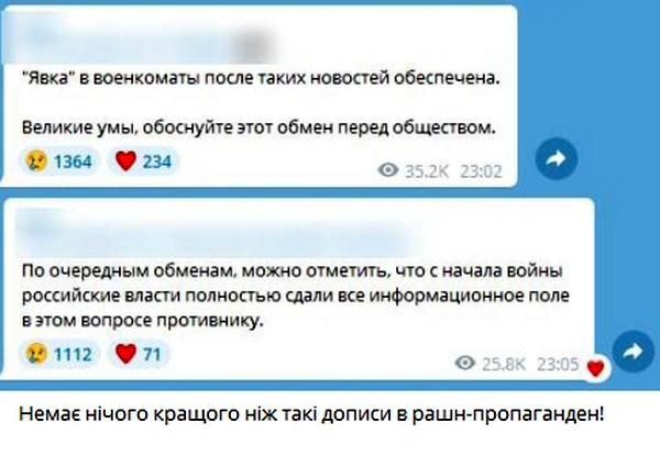 Які огидні злидні! Вони навіть не помічають своїх! Їхні люди повернулися додому, а їм пофік! І це проте, що ви ж невдовзі самі можете опинитися у заручниках мобілізації! Чи всім там відомо, що в нашому полоні краще, ніж в їхній рашці?