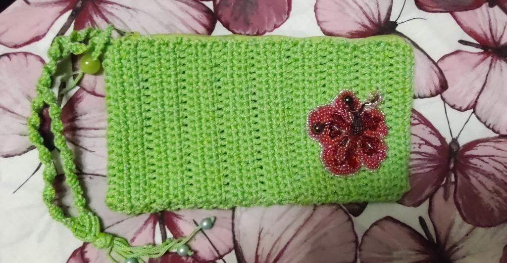 Сумка, вязанная крючком из шнура, обшита бусинами Диаметр 18 см, ширина 8 см Ремешок плетёный из бусин на крепком тросике 120 см, регулируется Брошка - вишенки из бисера, ручной работы, снимается Застёжка - кнопка 350 грн 0688135691