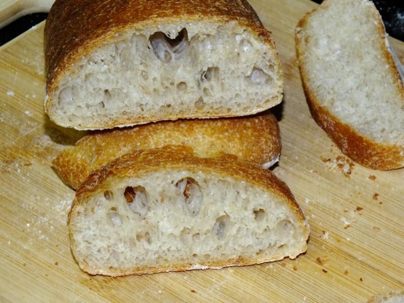 Готові чьябатти були набагато кращі за першу спробу. Дірки побільшали, а смак виявився м'якшим, кращим ніж з суцільної манітоби. Дуже добре зайшов родині з печінковим паштетом Але ж ще є, над чим працювати, і дірки малуваті , і тісто ще трохи гумовате.