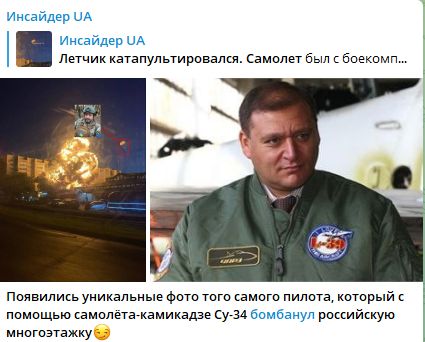 Это самое символичное фото, которое показывает, что собой представляют моральные качества российских военных летчиков. Бомбардировщик Су-34 с полной заправской топлива и снарядов вылетел с аэродрома Ейск в Краснодарском крае, вероятно, для нанесения удара по Украине. Однако после взлёта у самолёта возникла неисправность когда самолёт летел над жилым массивом Ейска. Вместо того, чтобы отвернуть бомбардировщик в сторону от жилых домов, российский лётчик решил спасти только свою жизнь и катапультировался, не предприняв попытки отвернуть, и бросил свой самолёт прямо на многоквартирный дом. Дом пылает, рвутся боеприпасы, погибло не менее 10 человек, доступа ко всем пылающим квартирам до сих пор нет. А пилот спокойно приземлился на парашюте, хорошо заметном на фото. Спас свою шкуру, а что там с другими - неважно. Российский пилот показал Ейску, что творят россияне в Украине - бросают неуправляемые бомбы по жилым домам, убивают без разбору. Лётчик-убийца, которому не жалко ни своих ни чужих, который живет и летает ради зарплаты наемника.