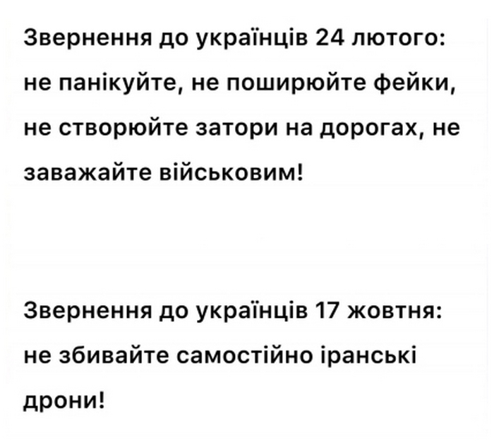 Збройні сили України просять учасників інтернет-спільноти та громадян не надавати ворогові додаткової інформації про точність обстрілів українських міст в режимі онлайн, оскільки ці дані можуть допомогти ворогові корегувати та планувати наступні ракетно-бомбові атаки.