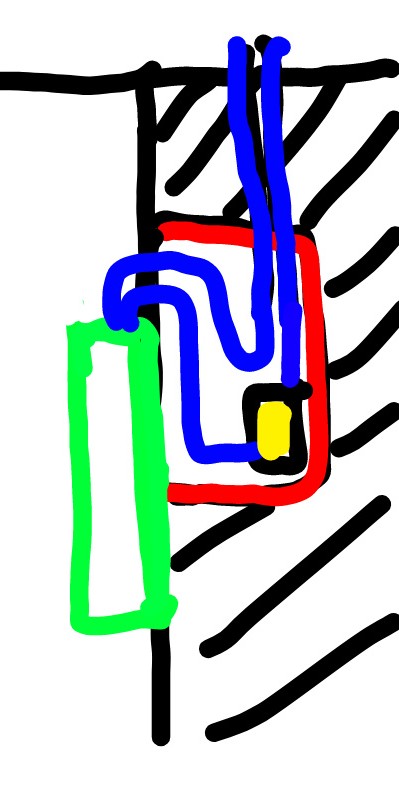 Черное- стена, в стене ниша небольшая(100*100*100мм), в которую сверху, с чердачного помещения заходят кабели питания и витая пара. В нише адаптер питания. Зелененький- роутер. Настенное крепление под потолком. Я знаю, что оптоволокно- хрупкое, не знаю насколько. Если так же монтировать gpon терминал- это возможно? Там загибы кабеля. Сделать прямое подключение кабеля- нереально, только переделывать, а не хочется. Какие возможны варианты? Насколько вообще жесткие требования провайдера в этом контексте?