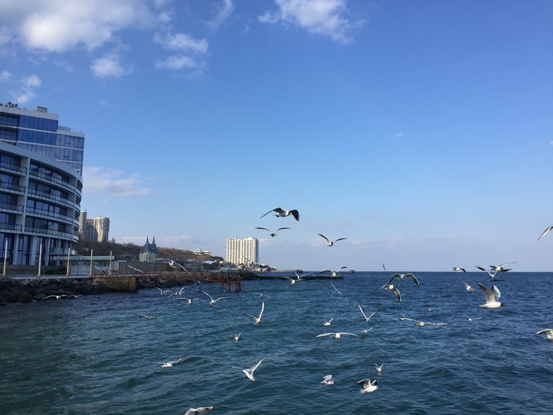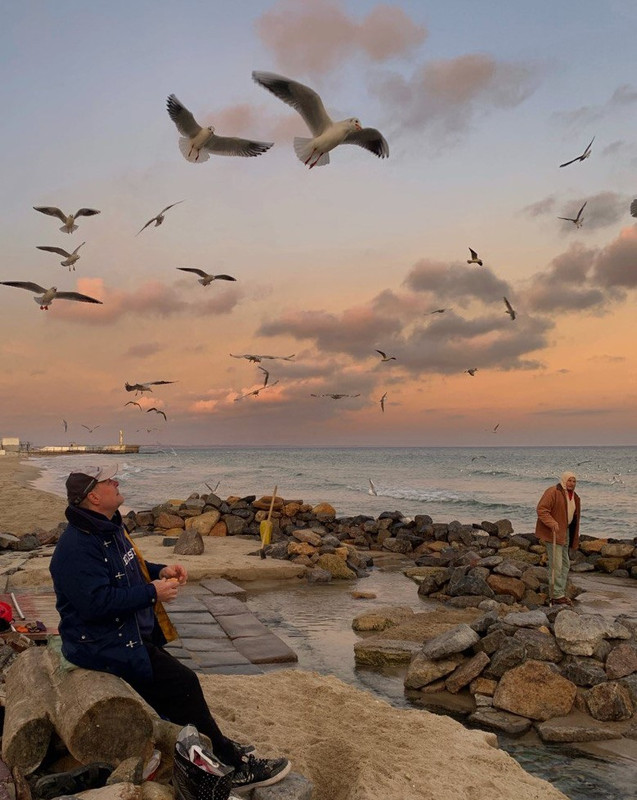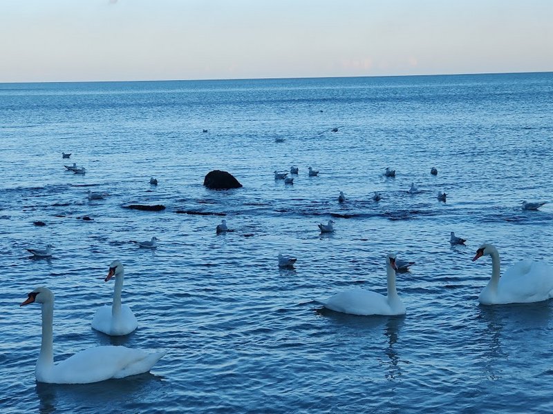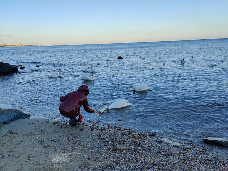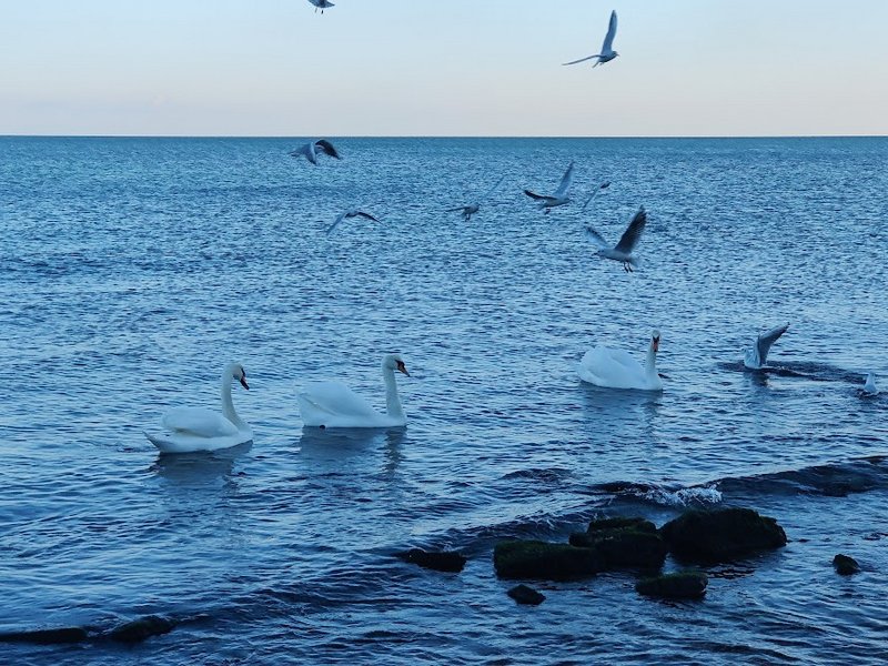 ..лебеди на пляже Ильичевска на днях.