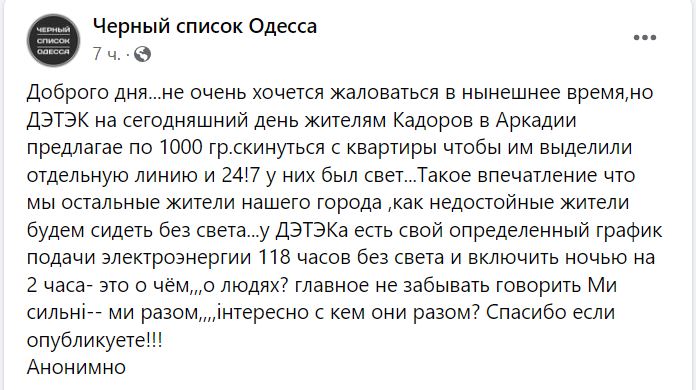 Все уже читали сегодняшний пост ДТЕК Одеські електромережі?