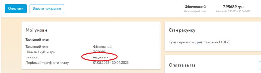 Вот и я сегодня в очередной раз обнаружила: в кабинете Нафтогаза надпись про скидку поменялась с "не надається" на "надається". Но! это такое уже не в первый раз, фишка в том, что, когда наступает первое число следующего месяца, эта надпись снова меняется на "не надається". И по факту скидка была только в августе-сентябре 22 года почему-то, хотя весь прошлый год оплаты были до 15 числа и через кабинет.