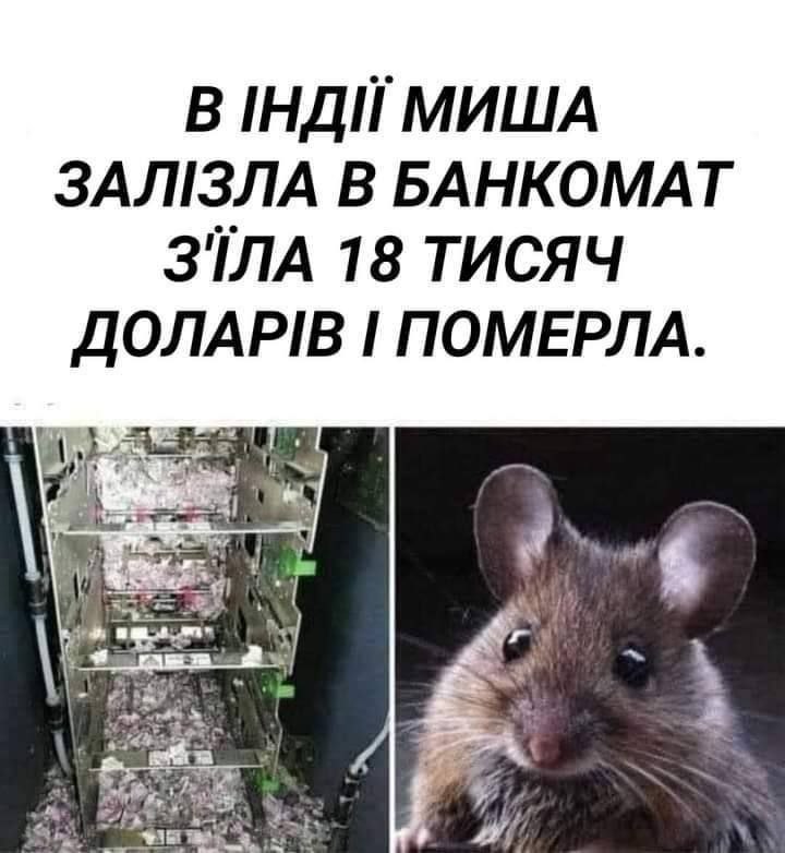 Та в нас зелені щурі до бюджету в 2019 році пролізли й зжерли там уже не менше 18 мільярдів доларів. І далі продовжують гризти. Й нічого, живі, ще й морди собі он які понаїдали під час війни...