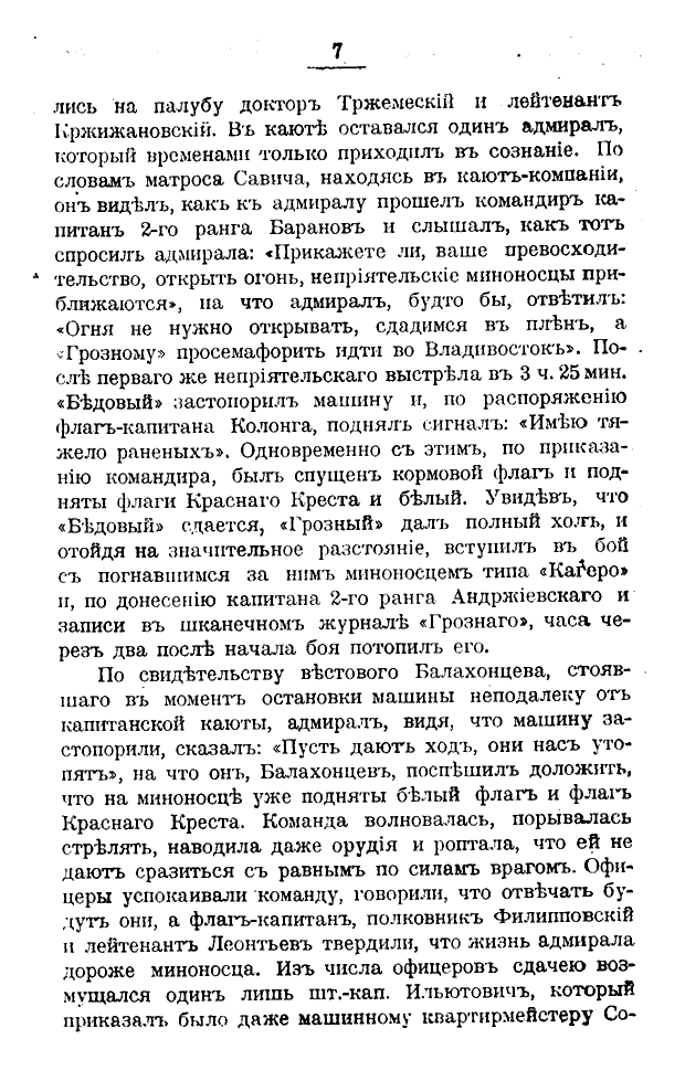 Так почитайте эти протоколы! Тут написано как сдался "Бедовый" и кому.Устаревшее корыто "Грозный" очень даже потопил японский миноносец.