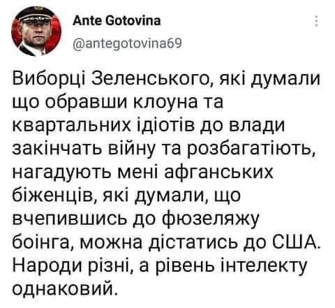 Жду комментариев тех, кто привел зеленого работника хуйла к власти.