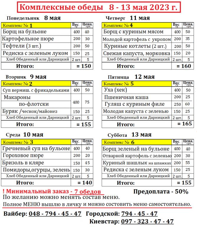 2. Сегодня на завтра - с 7:00 до 12:00 - Комплексные обеды