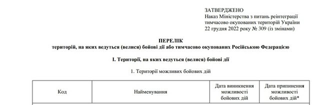 Про затвердження Змін до Переліку територій, на яких ведуться (велися) бойові дії або тимчасово окупованих Російською Федерацією.