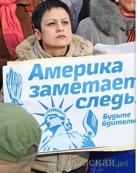 Она остановиласи и: "Вот придет сюда Омерика и заберет всё, заводы и земли".