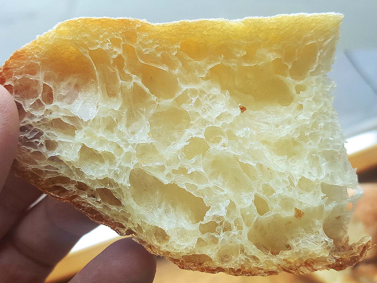 Интересно: с год назад тоже увлёкся высокой гидратацией. До сих пор "успеха не имел"(с) Часть экспериментов тоже годятся на выброс. Моя цель - pan de cristal пока недостижима. То ли это мода как-то влияет, то ли траектория увлечений у домашних пекарей какие-то паттерны имеет.