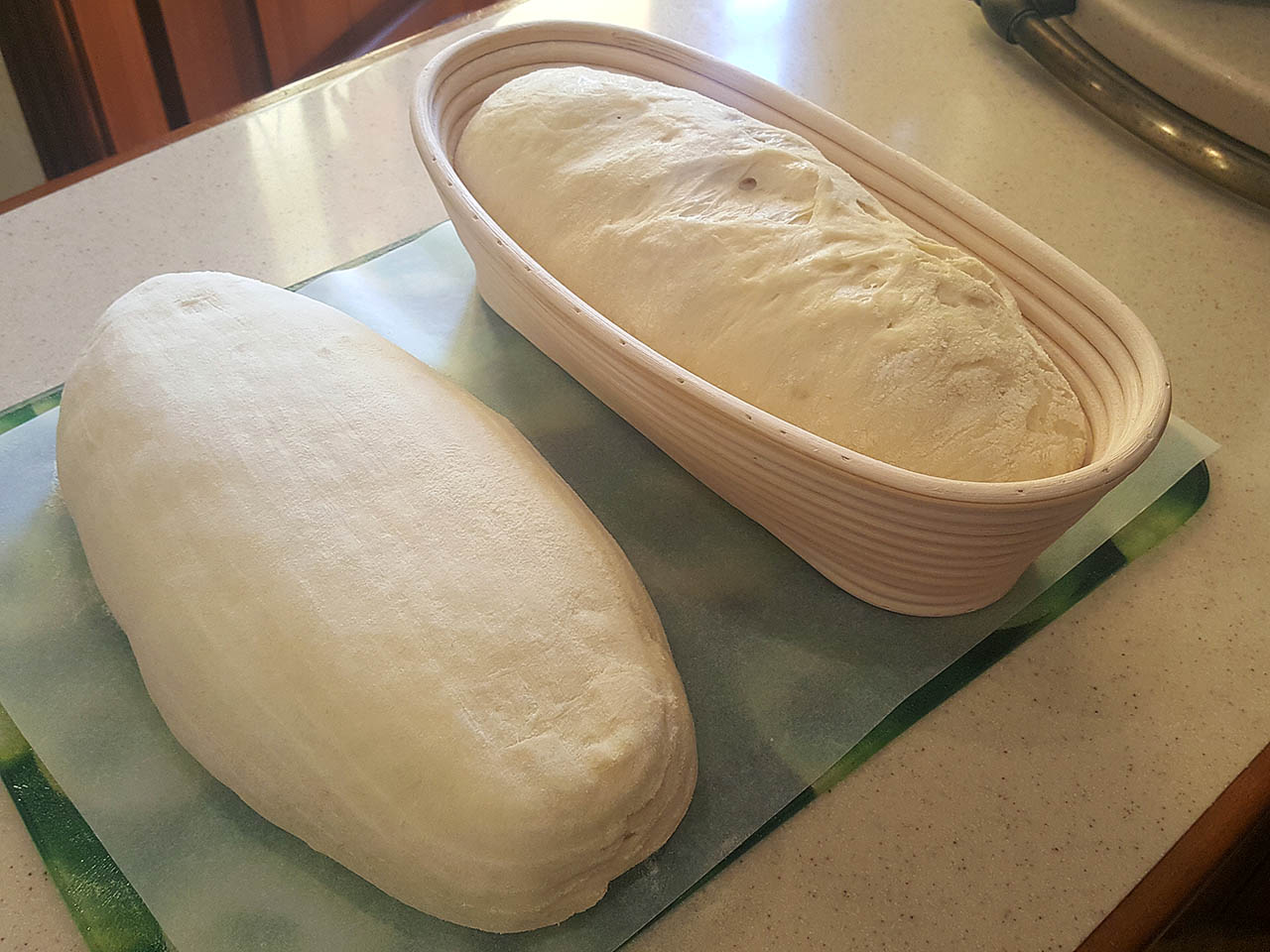 Подъем 1час в тепле (оставил в ведре), мокрая ламинация, 30минут тепло.