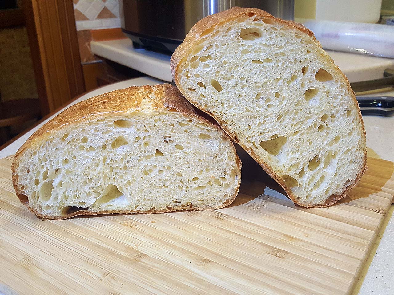 Удивительно, но и заварка, и тесто на предзамес, были крутыми, почти как бига.