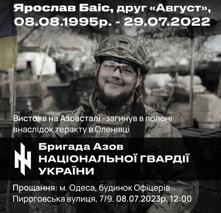 Ярослав Баіс, друг «Август», загинув у наслідок російського теракту в Оленівці.