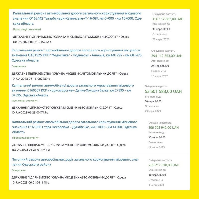 Как отмечает депутат Одесского областного совета Юлия Чухало, одну дорогу на сотни миллионов гривен будет ремонтировать фирма депутата от запрещенной партии ОПЗЖ.