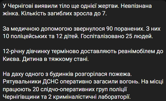 Семь человек ранены в Чернигове. Из них шестеро – дети в возрасте от 2 до 12 лет. Все они были на ярмарке, которую устроили в центре города.