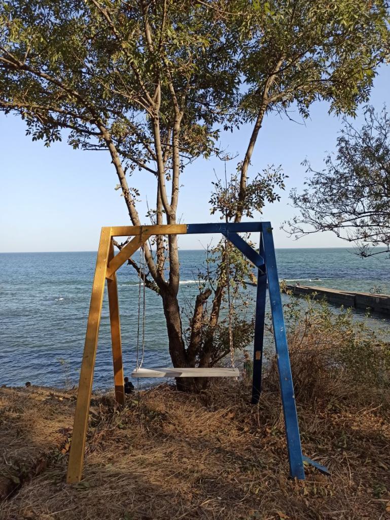 Качель с естественным ограничителем в виде дерева заставила улыбнуться )