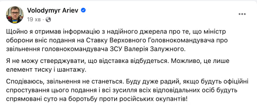 Уже пишут что заява на увольнение Залужного оказалось фейком