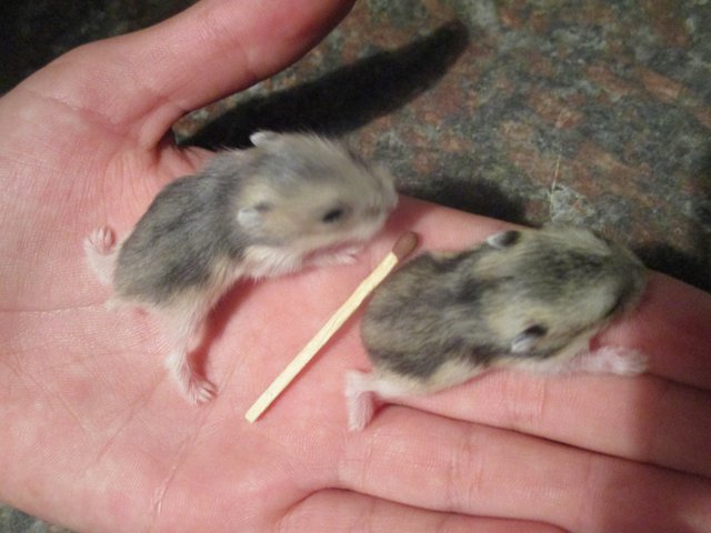 Вот как выглядели новорожденные спустя полтора месяца (это у доци на ладошке).