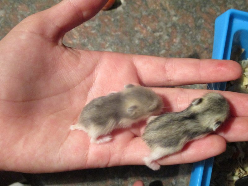 а мои меняли наполнитель через день, пара жила в большом аквариуме..перед родами Хыма строила кратер-гнездо и на вершине в ямке выводок жил дней 7 не трогали.. ХОМА прекрасный родитель,он приносил ей еду и иногда сидел с детьми...мать выходила в "туалетную комнату" вниз..там сыро) там и убирали. Им надо давать суховатый творог,а то без белковой пищи они канибалы-едят слабого малыша( те похожи на червяков ) примерно через неделю обрастают и еще--дети пищат, а взрослые молчуны. У нас были сирийские, он белый,а она персиковая. Однажды мы нашли...думали мышь,замученая..МЫ на 8 эт, мышей не было и у соседей не было)) детвора во дворе сообщила-на 1 этаже сбежал хомяк джунгарик..он прогрыз фанерный короб....как он добрался вверх,его секрет...но зубы еле виднелись)) Вет сказал--очищать плоды от кожуры и кусочки ему подкладывать..через неделю ожил! отдавать не хотели...т к хозяин замучил хомячка, а парнишка ревел...отдали) Джунгарики мелкие,сирийские крупные . Одесский зоопарк принимал в зоомагазин,там и ветврач принимал.