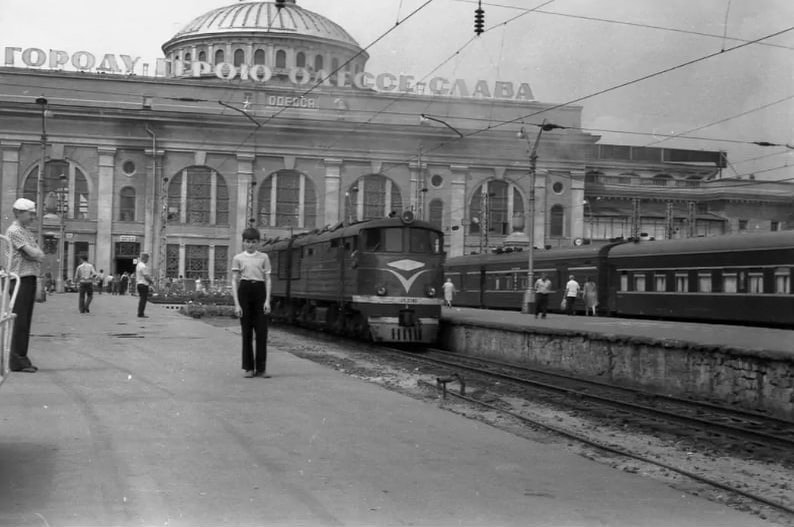 Ну и сам тепловоз ТЭ3! Вот по нему привязку сделать очень трудно, так как его можно было видеть у нас на Вокзале (станция Одеса Головна) на протяжении всех шестидесятых, через семидесятые и восьмидесятые, и вплоть до начала девяностых годов. ТЭ3 был основным базовым тепловозом весь советский период после ВМВ не только по Украине (он чисто наш, украинский в основном выпускался в Харькове и Луганске, и очень небольшой партией в подмосковной Коломне), но и по всему бывшему СС. На его основе была разработана не менее массовая линейка тепловозов типа ТЭ10 всех серий и модификаций. Самих ТЭ3 в работе давно нет, но остаются в строю его последние и уже немолодые "дети" -- 2ТЭ10М и 2ТЭ10УТ. Но какая работа для такого тепловоза была на фото? Для магистральной работы в пассажирском движении он практически не использовался. На тепловозных ходах обычно работали его прямые потомки -- тепловозы 2ТЭ10Л (и его пассажирский вариант ТЭП10Л) депо ТЧ 2 Котовск, и до 1980 года депо ТЧ 8 Николаев.