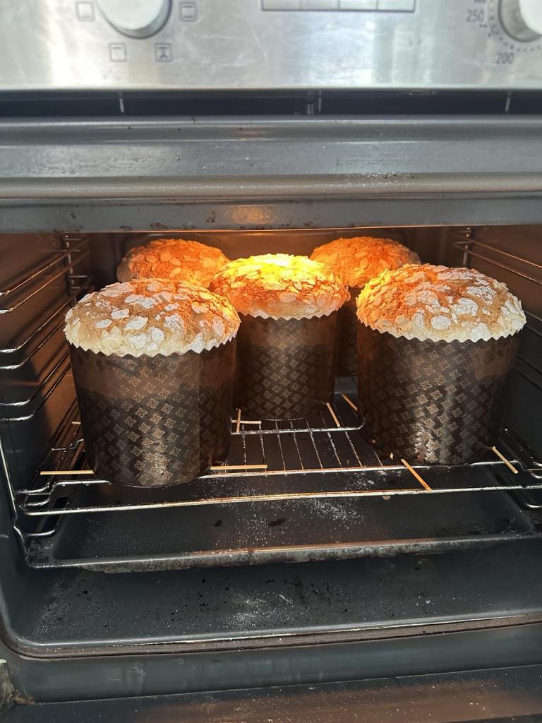 В этот раз пекли Мясоедовский классический и его вариацию с повышенным содержанием сл.масла и желтков, вместо яиц. Мука - итальянская на половину с нашей обычной. Подъем слегка удивил, в четверг опара поднялась и стала опадать всего за 4 часа. Дальше рост теста и теста в формах также был весьма ускоренным.
