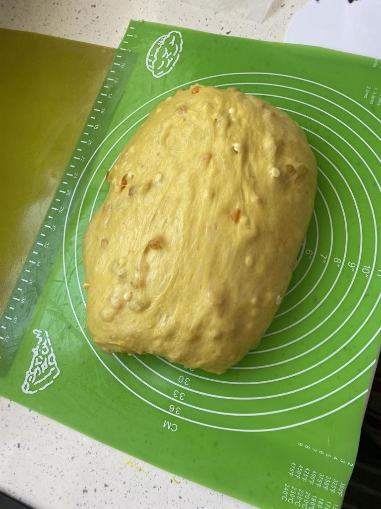 Ще була пасочка по рецепту калача Vds -фото були раніше. Підгледіла у Маестро Ustas і додала марципан. Але звичайний. Не пошкодувала зовсім.Його ніхто поштучно там не знайшов( а я бачу маленькі кратери заповнені розплавленим марципаном). Але вони справді дають загальний делікатний смак марципану, як цукерка, але не так солодко і дуже ароматно.В поєднанні з журавлиною і вишнею вийшло дуже збалансовано по смаку. Це мій улюблений рецепт пасочки на новий лад. Тут теж масло Президент. Заміс не викликав проблем. Дякую, Ustas, за поради і відповіді на питання! Фото в контейнері 1 тіста.