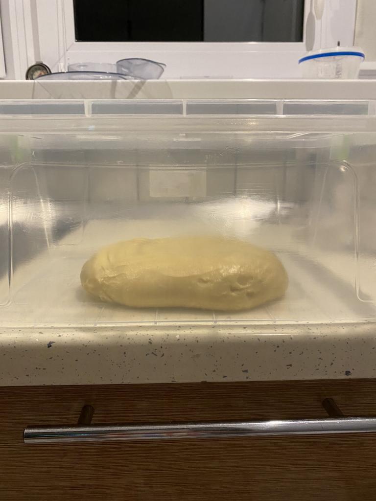 Ще була пасочка по рецепту калача Vds -фото були раніше. Підгледіла у Маестро Ustas і додала марципан. Але звичайний. Не пошкодувала зовсім.Його ніхто поштучно там не знайшов( а я бачу маленькі кратери заповнені розплавленим марципаном). Але вони справді дають загальний делікатний смак марципану, як цукерка, але не так солодко і дуже ароматно.В поєднанні з журавлиною і вишнею вийшло дуже збалансовано по смаку. Це мій улюблений рецепт пасочки на новий лад. Тут теж масло Президент. Заміс не викликав проблем. Дякую, Ustas, за поради і відповіді на питання! Фото в контейнері 1 тіста.