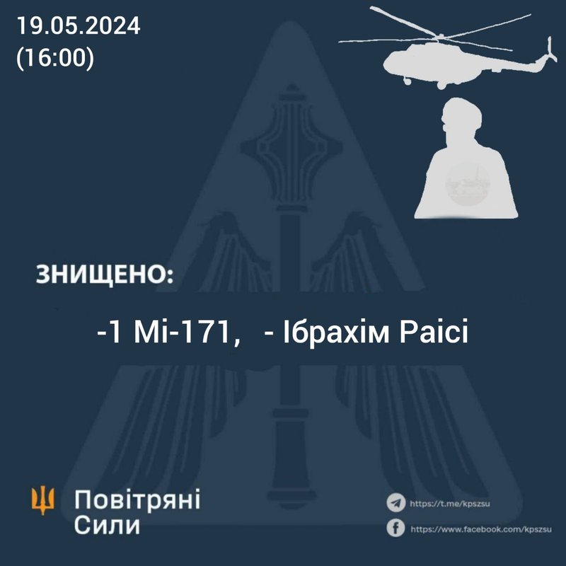 Президент Ірану Раїсі не вижив після аварії свого гелікоптера, — 12-й канал Ізраїлю