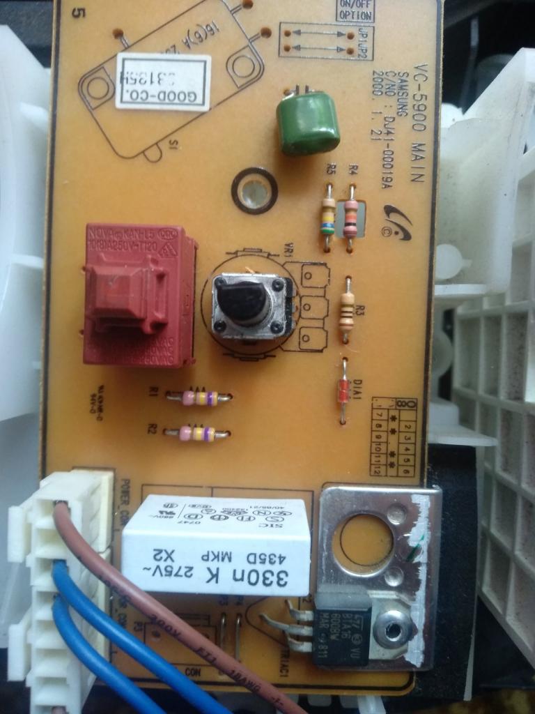 По фото там просто тиристорный регулятор. Там кроме самого тиристора, сгорать особо нечему. Ну ещё прозвонить кнопку и потенциометр. Может двигатель? Дальше уже только щупать тестером и руками