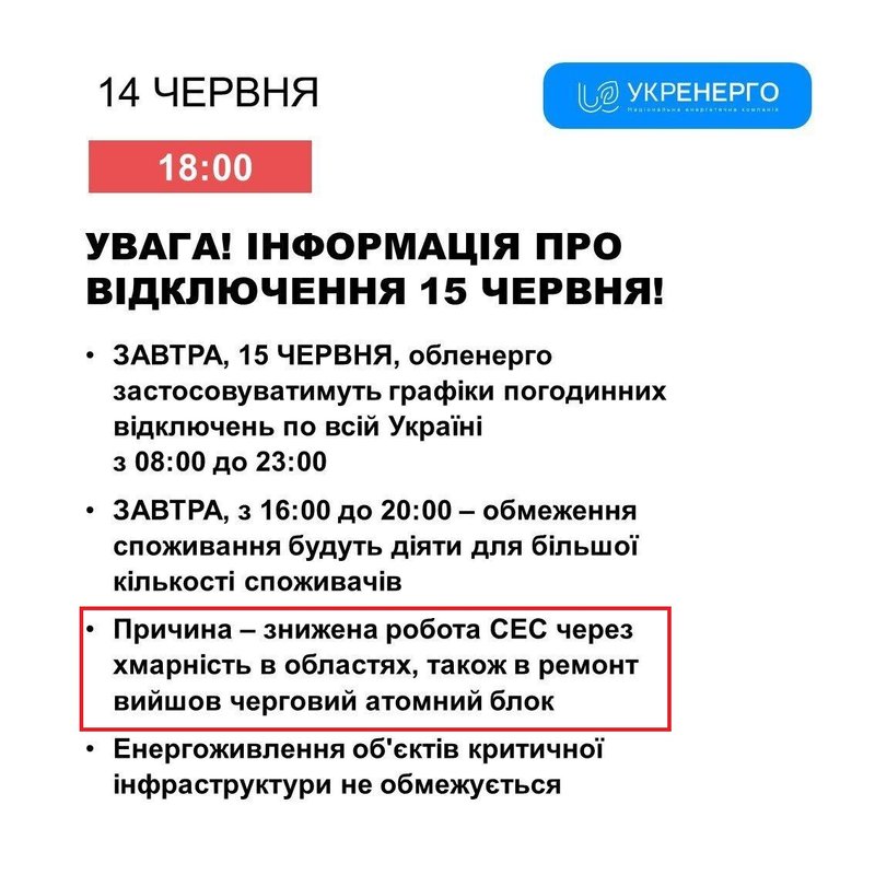 У них беспроиграшная ситуация, пасмурно - света нет, жарко - света нет.)))
