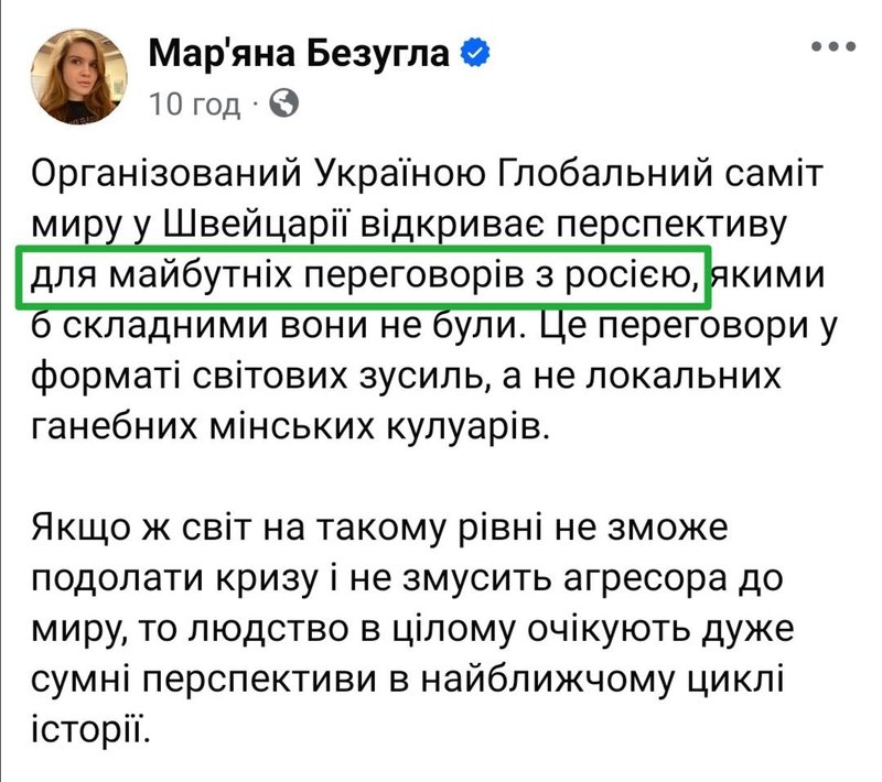 А тепер не смішне: Безвугла (Єрмак) прямо озвучує, що саміт мила - це переговорний майданчик з рашкой, але у всіх на виду (вимоги пуйла всі вчора чули).