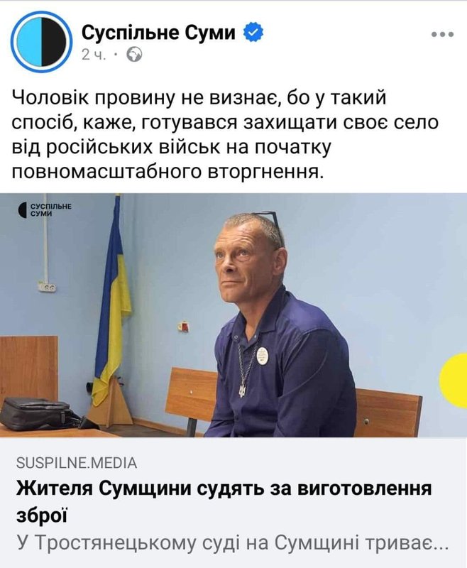 Чоловіка судять за виготовлення зброї, яку він змайстрував під час наступу росіян. Він мав необережність розказати потім про це Суспільному.