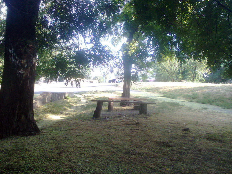 На момент моего подхода сюда, под теми скамейками занимал горизонтальное положение человек, которому было уже хорошо. Через несколько минут к нему подошли два чудака с тачкой (по типу строительной). Того погрузили в тачку и увезли. Вот это сервис!