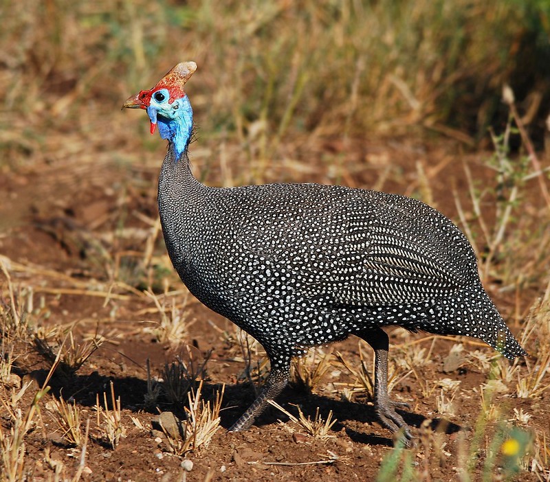У нас тут целыми ...толпами 24\7 )))) ходЮтЬ цесарки (Обыкновенная цесарка / Numida meleagris). Некоторые соседи их подкармливают, так их с каждым годом всё больше и больше и больше. Пугливы, по забавны. М Н О Г О. Птенцов каждый год приводят десятками. Не было ещё ни одного дня с тех пор я купила этот дом, чтобы мимо ворот по улице не прошла толпа цесарок. На крышу залетают, в саду копоршатся, да везде. Цесарки - один из десятка видов птиц, которых вижу в саду ежедневно.