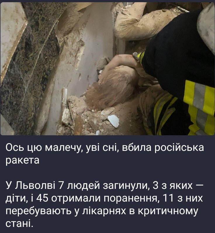Помимо случайных попаданий рашисты под предводительством своего царька и в угоду своему царьку целенаправленно уничтожают не только инфраструктуру, но и мирное население.