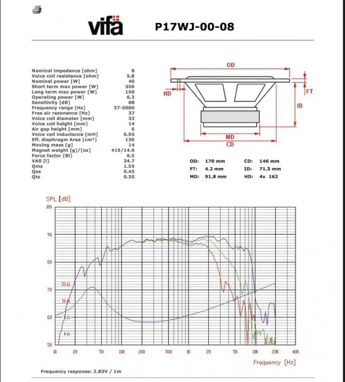 Динамик Vifa | Vifa Midwoofer | Высокая мощность: Способен выдерживать среднеквадратичную мощность 80 Вт, обеспечивая надежную отдачу звука для динамичного воспроизведения звука.