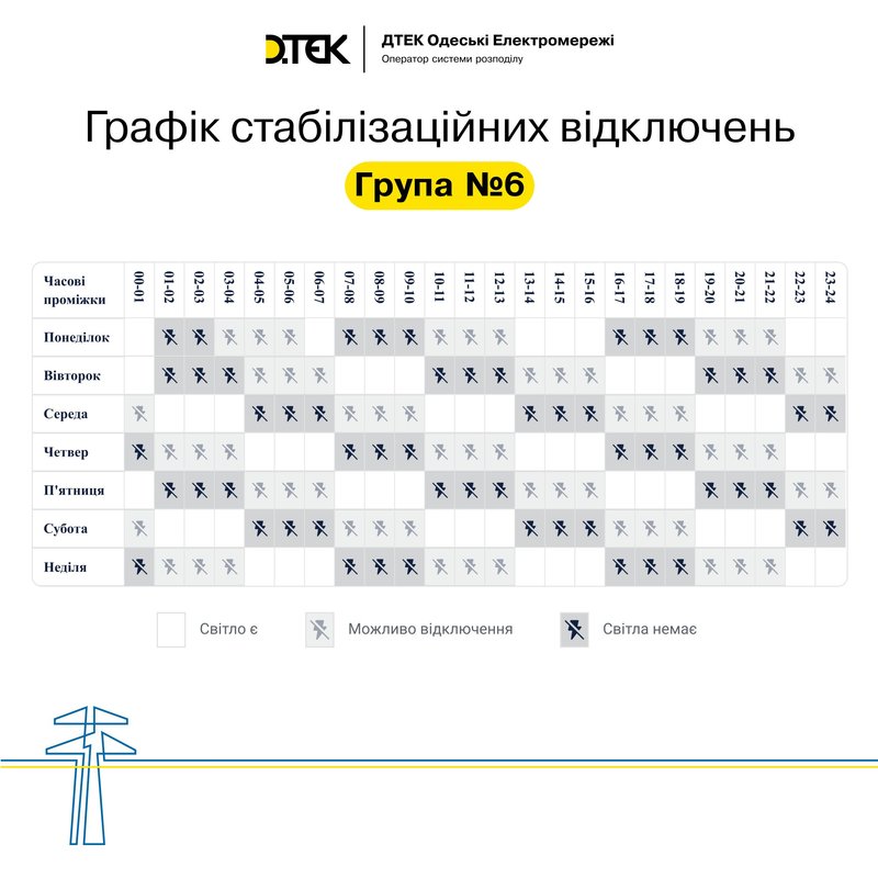 Графік відключень за вашою адресою дізнавайтесь на сайті та офіційних сторінках вашого оператора системи розподілу