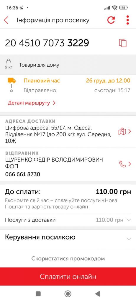 самовивоз - У понеділок з 15:00 до 20:00 (відправка НП з вівторка по четверг)