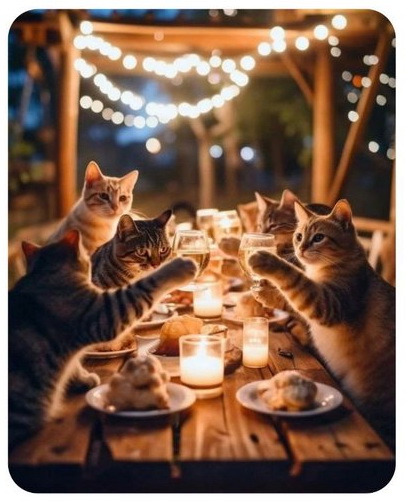Но, что ни говори, а котики -- класс! Сидят себе и празднуют по-человечески. (((((