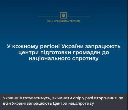 Під час зустрічі з представниками громадянського суспільства глава держави Володимир Зеленський дав розпорядження створити Центри нацспротиву. Документ щодо цього напрацювали за координації заступниці керівника Офісу Президента держави Ірини Верещук.