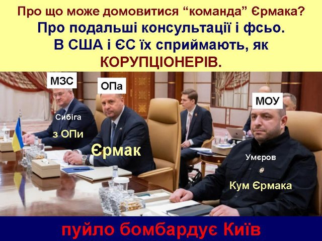 ��Після такої інформаційної «артпідготовки» Зеленського було не зупинити. Усі аргументи Єрмака розбилися об сакраментальні: «Я фартовий», «Мені завжди щастило, Росія звалиться». І нарешті, коли Єрмак йому набрид, пролунало підсумкове: «Ідіть усі в сраку!»