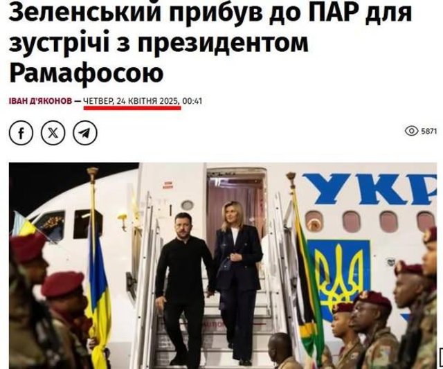 Президент України Володимир Зеленський прибув до Південно-Африканської Республіки, де запланована зустріч із президентом ПАР Сирілом Рамафосою.