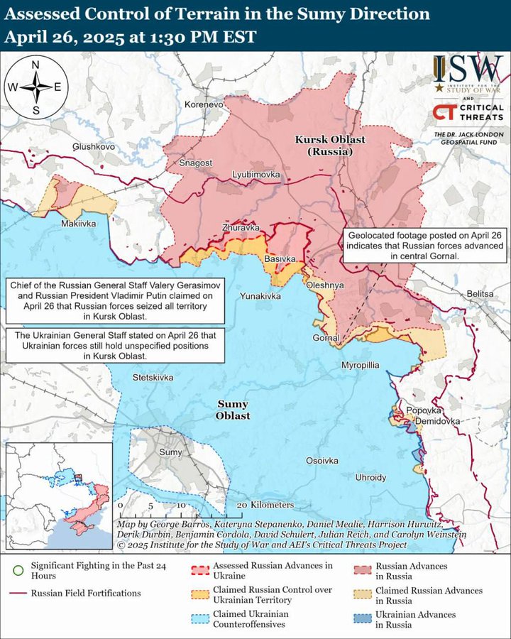 Армія рф захопила на Сумщині чотири населені пункти і хоче наблизитися до міста Суми, – ISW