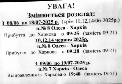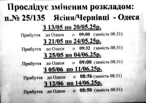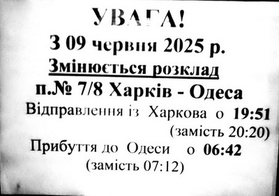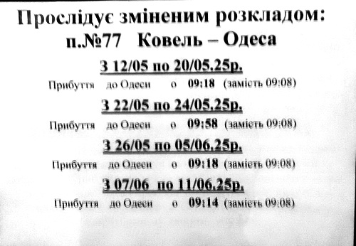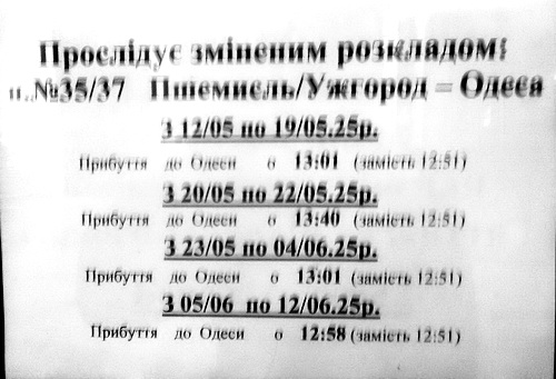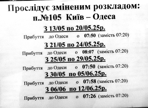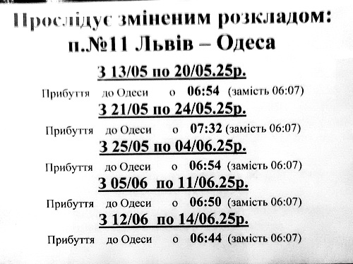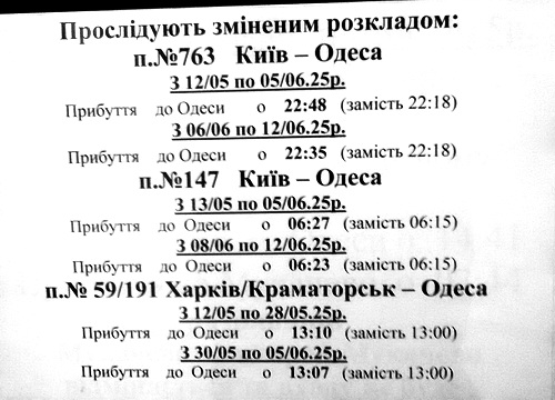 В связи с ремонтом путей (не, не у нас, далеко от города), изменяется время поездам по Вокзалу Одесса Главная.