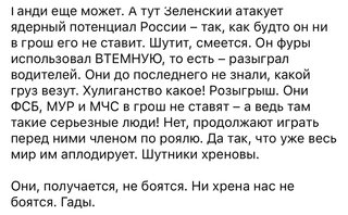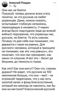 И да, у части населения раши из поддерживающих войну в Украине любовь к власти и всем ее структурам стала заметно опадать (что видно по комментам по всему инту) после последних событий и они возмущены..., плюс сожалеют, что нет сталина на их головы, а если кого-то и накажут, то не дальше стрелочника.