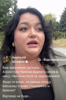 Вночі, коли летять шахеди, ті самі люди, які гімнили армію, сруться кірпічами, бо нема кому ті шахеди збивати. Бо ж такі Анастасії накрутили суспільство, щоб ніхто в армію не йшов. І не йдуть, наслухалися вже страшилок.