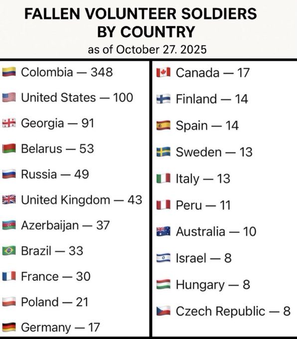 Данные о погибших воинах-добровольцах из разных стран, отдавших свои жизни за Украину в борьбе с кацапскими захватчиками