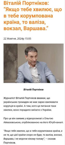 ну Портников где то и прав - самая большая проблема Украины это не коррупция, а наш йобнутый сосед и конечно дибильный выбор сделаный в 2019......мы последние лет 15 боремся с коррупцией, пытаемся кудато вступить, а надо было готовиться к войне.....